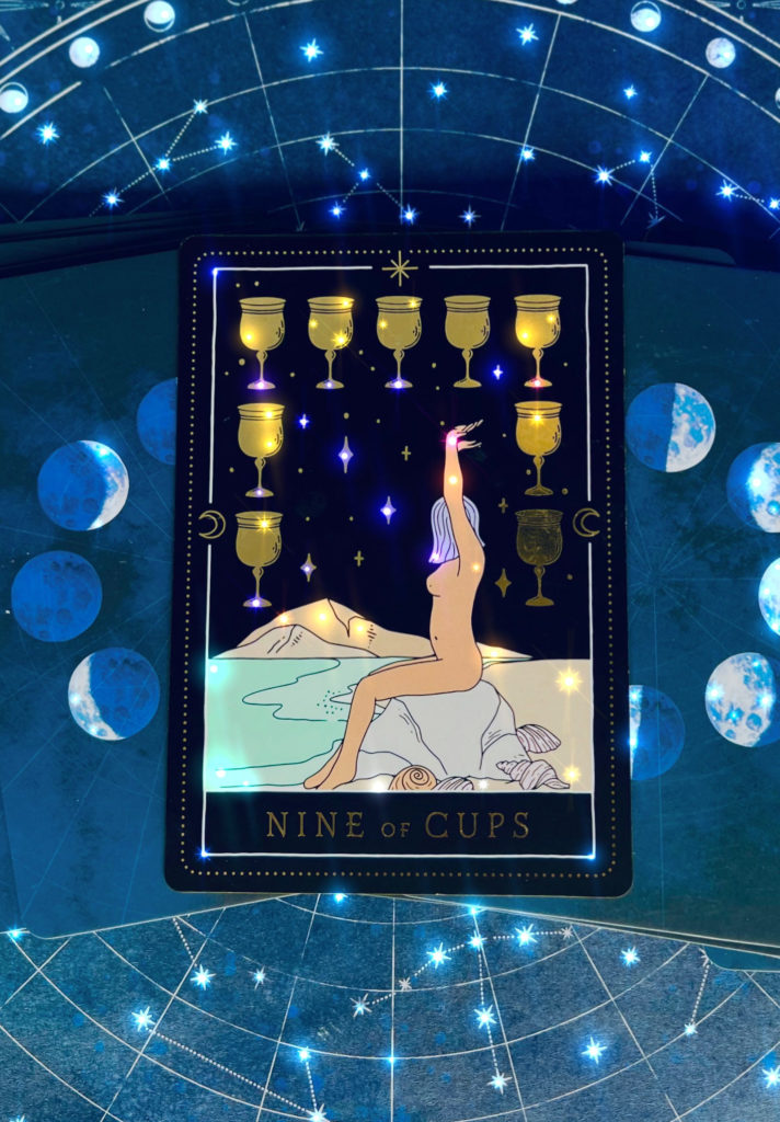 In summary, the Nine of Cups is a powerful tarot card that represents emotional fulfillment, contentment, and satisfaction. It encourages us to appreciate the blessings in our lives and to work towards our goals with humility and gratitude. By understanding the symbolism of this card and its potential warnings, we can fully embrace its positive energy and use it to manifest our heart’s desires. With persistence and positive intent, we can achieve abundance, happiness, and success in our lives.